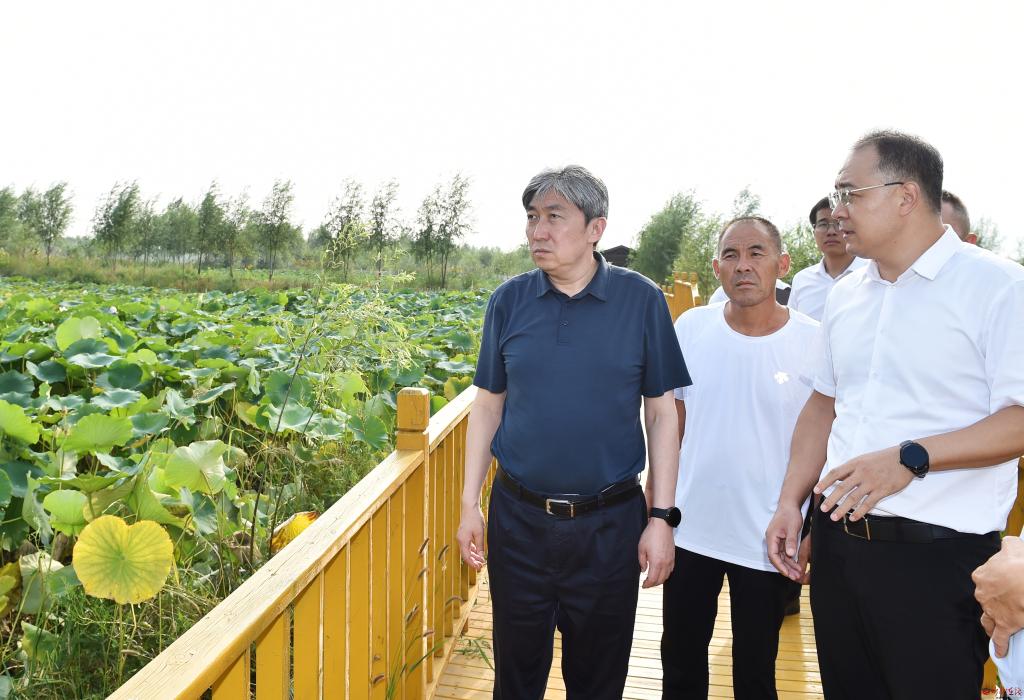 在吉福寺農(nóng)場(chǎng),朱曉東深入田間地頭實(shí)地查看農(nóng)作物長(zhǎng)勢(shì),與農(nóng)場(chǎng)負(fù)責(zé)人面對(duì)面交流,仔細(xì)詢問(wèn)農(nóng)產(chǎn)品品種、畝產(chǎn)量、耕種模式、農(nóng)旅融合發(fā)展等情況。他指出,要加快轉(zhuǎn)變發(fā)展觀念,立足農(nóng)場(chǎng)資源稟賦,找準(zhǔn)農(nóng)旅融合發(fā)展的切入點(diǎn),把旅游產(chǎn)業(yè)和農(nóng)業(yè)產(chǎn)業(yè)有機(jī)結(jié)合,高標(biāo)準(zhǔn)高品質(zhì)打造有鄉(xiāng)村氣息的參與式、觀光式和體驗(yàn)式旅游產(chǎn)品。要充分挖掘鹽堿地綜合利用潛力,因地制宜抓好技術(shù)推廣、品種選育等工作,大力探索鹽堿地治理改良的有效方法,深度做好鹽堿地特色農(nóng)業(yè)大文章。