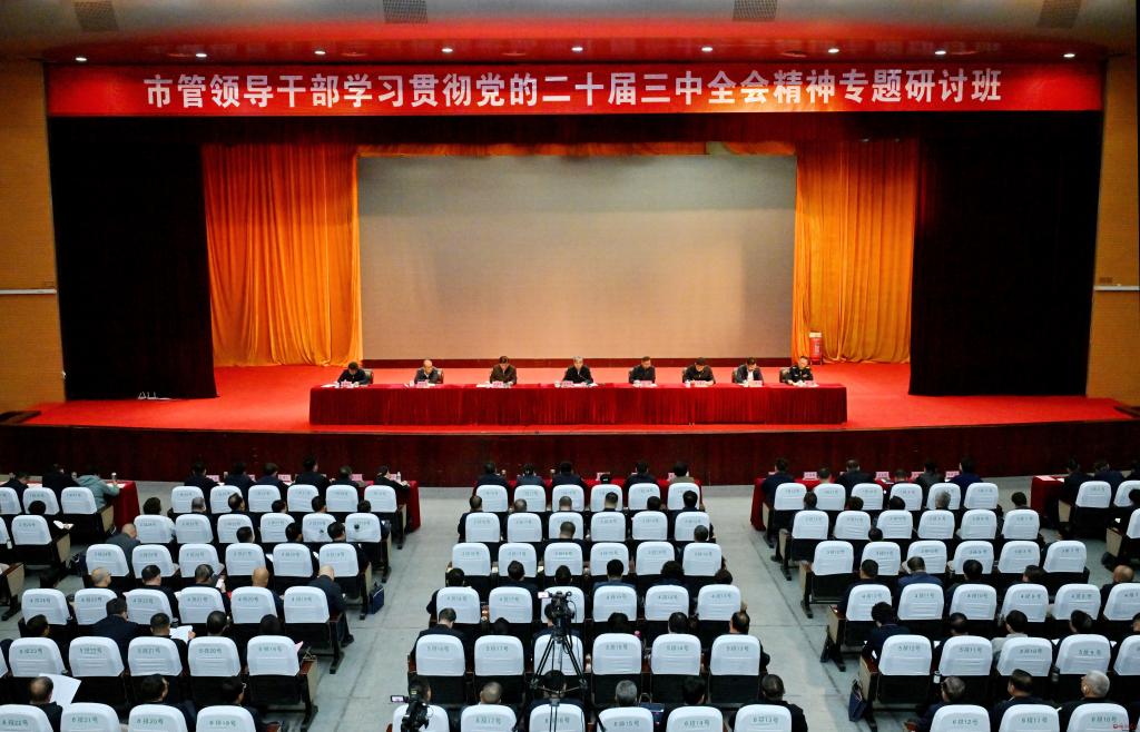 10月9日,市管領(lǐng)導(dǎo)干部學(xué)習(xí)貫徹黨的二十屆三中全會精神專題研討班開班。市委書記朱曉東出席開班式并作動員講話。他強調(diào),要深入貫徹落實黨的二十屆三中全會和省委十二屆八次全會、市委五屆七次全會精神,高舉改革開放旗幟,堅定扛牢使命任務(wù),牢固樹立“發(fā)展是硬道理、業(yè)績是新?lián)?dāng)、交賬是軍令狀”的工作理念,秉持“負責(zé)任、動腦筋、講良心”的工作要求,開拓創(chuàng)新、奮發(fā)有為,不斷開創(chuàng)我市進一步全面深化改革新局面,奮力譜寫中國式現(xiàn)代化忻州篇章。市人大常委會主任王珍出席開班式。市委常委、秘書長溫建軍主持開班式。市委常委,市人大常委會、市政府、市政協(xié)負責(zé)同志,市中級人民法院院長,忻州職業(yè)技術(shù)學(xué)院黨委書記,各縣(市、區(qū))委書記出席開班式。