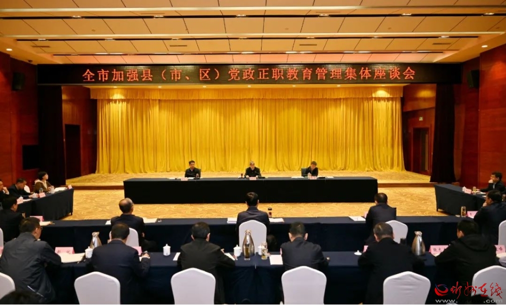 11月18日,全市加強縣(市、區(qū))黨政正職教育管理集體座談會召開。市委書記朱曉東主持會議并講話。他強調(diào),縣(市、區(qū))黨政正職干部要真正發(fā)揮好組織領(lǐng)導、承上啟下、示范引領(lǐng)的“關(guān)鍵作用”,做到品德兼修、務(wù)實廉潔,在奮力譜寫中國式現(xiàn)代化忻州篇章中做出經(jīng)得起歷史和人民群眾檢驗的業(yè)績。市領(lǐng)導溫建軍、張敏、王建江、張宇光、崔崢嶺、孟宏斌、李軍出席會議。