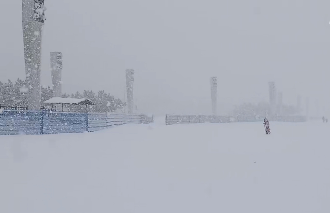 煙臺大學(xué)東門附近,冷流雪正在狂暴,宛如北極科考。微博網(wǎng)友視頻截圖