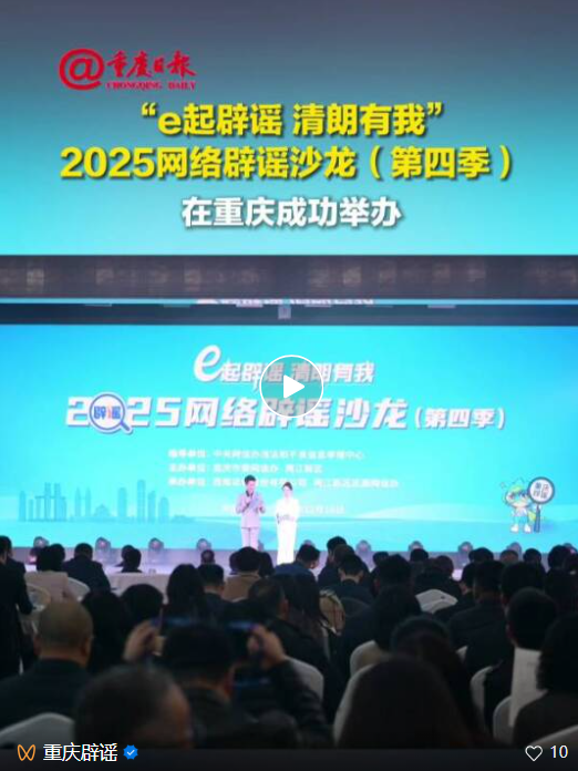 | “e起辟謠 清朗有我”2025網(wǎng)絡(luò)辟謠沙龍(第四季)在重慶成功舉辦 |