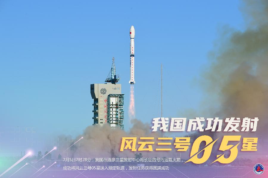 7月5日7時(shí)28分,我國在酒泉衛(wèi)星發(fā)射中心用長征四號丙運(yùn)載火箭,成功將風(fēng)云三號05星送入預(yù)定軌道,發(fā)射任務(wù)獲得圓滿成功。新華社發(fā)(汪江波 攝)