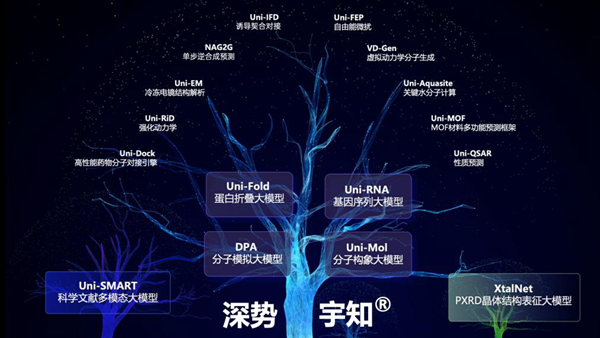 深勢科技聯(lián)合創(chuàng)始人、CEO孫偉杰介紹,近年來,深勢科技與協(xié)作者們推出了DPA分子模擬大模型、Uni-Mol分子構(gòu)象大模型、Uni-Fold蛋白折疊大模型、Uni-RNA基因序列大模型、Uni-Dock高性能分子對接引擎,以及Uni-SMART科學文獻多模態(tài)大模型等一系列科學大模型及底層引擎。