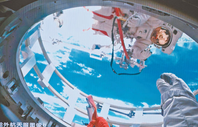 航天員蔡旭哲在空間站組合體艙外工作的畫(huà)面。