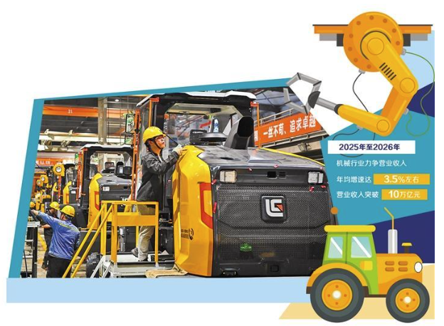 《方案》提出,2025年至2026年,機械行業(yè)運行保持平穩(wěn)向好態(tài)勢,重點產(chǎn)業(yè)鏈供應(yīng)鏈韌性和安全水平持續(xù)提升,發(fā)展質(zhì)量效益邁上新臺階,力爭營業(yè)收入年均增速達(dá)到3.5%左右,營業(yè)收入突破10萬億元。中國機械工業(yè)聯(lián)合會相關(guān)負(fù)責(zé)人表示,《方案》的目標(biāo)設(shè)定,體現(xiàn)了規(guī)模與質(zhì)量并重的系統(tǒng)性思維,強調(diào)供給和需求兩側(cè)協(xié)同發(fā)力。