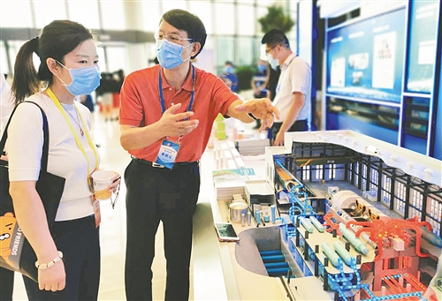 國家電投集團的專家在模型前向參觀者介紹國家科技重大專項成果——國和一號(CAP1400)壓水堆核電站。經(jīng)濟日報記者 佘惠敏攝