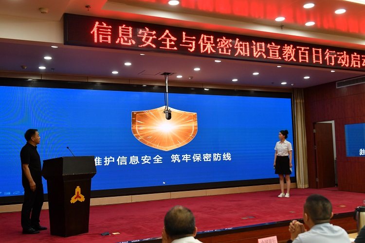 在全體與會人員的見證下,郭志遠(yuǎn)副行長按下啟動鍵,點亮百日行動“安全盾牌”,正式宣布忻州市銀行業(yè)金融機(jī)構(gòu)“信息安全與保密知識宣教百日行動”全面開啟。