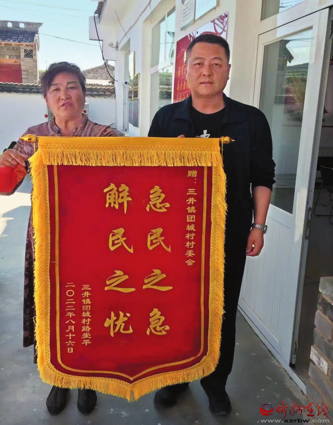村民路愛平介紹說,去年8月9日,岢嵐縣遭遇到了幾十年不遇的特大暴雨侵襲,凌晨4點(diǎn)多,外出辦事的甄繼榮趕回村里,召集村兩委班子成員連夜巡查村民房屋是否有安全隱患,巡查到早上7點(diǎn)時(shí),發(fā)現(xiàn)靠近河道居住的路愛平和吳貴生兩戶村民的護(hù)坡有被洪水沖刷的痕跡,存在安全隱患,當(dāng)時(shí)還在下著大雨,村里也沒有工程機(jī)械,無奈之下,甄書記及時(shí)聯(lián)系了駐地部隊(duì)的勤務(wù)站,懇請出動一臺大型挖掘機(jī)救援。經(jīng)過部隊(duì)官兵3個(gè)小時(shí)奮戰(zhàn),挖出新的排洪渠道,臨時(shí)改變河水流動方向,保住了村民的住房,并及時(shí)在兩排房屋旁邊擋上防洪沙袋。洪水過后,他又積極爭取資金,在鄉(xiāng)政府的支持下,團(tuán)城村修建了200米的護(hù)堤壩,加固了護(hù)坡。事后,村民路愛平到村委會送上了錦旗。
