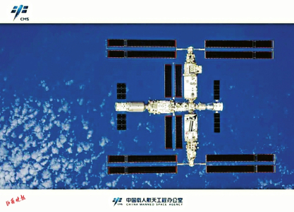 神舟十六號乘組返回地面前手持高清相機(jī),通過飛船繞飛拍攝的空間站組合體全景照片在見面會上首次發(fā)布。這是我國首次在軌獲取以地球?yàn)楸尘暗目臻g站組合體全貌圖像,也是中國空間站的第一組全構(gòu)型工作照。
