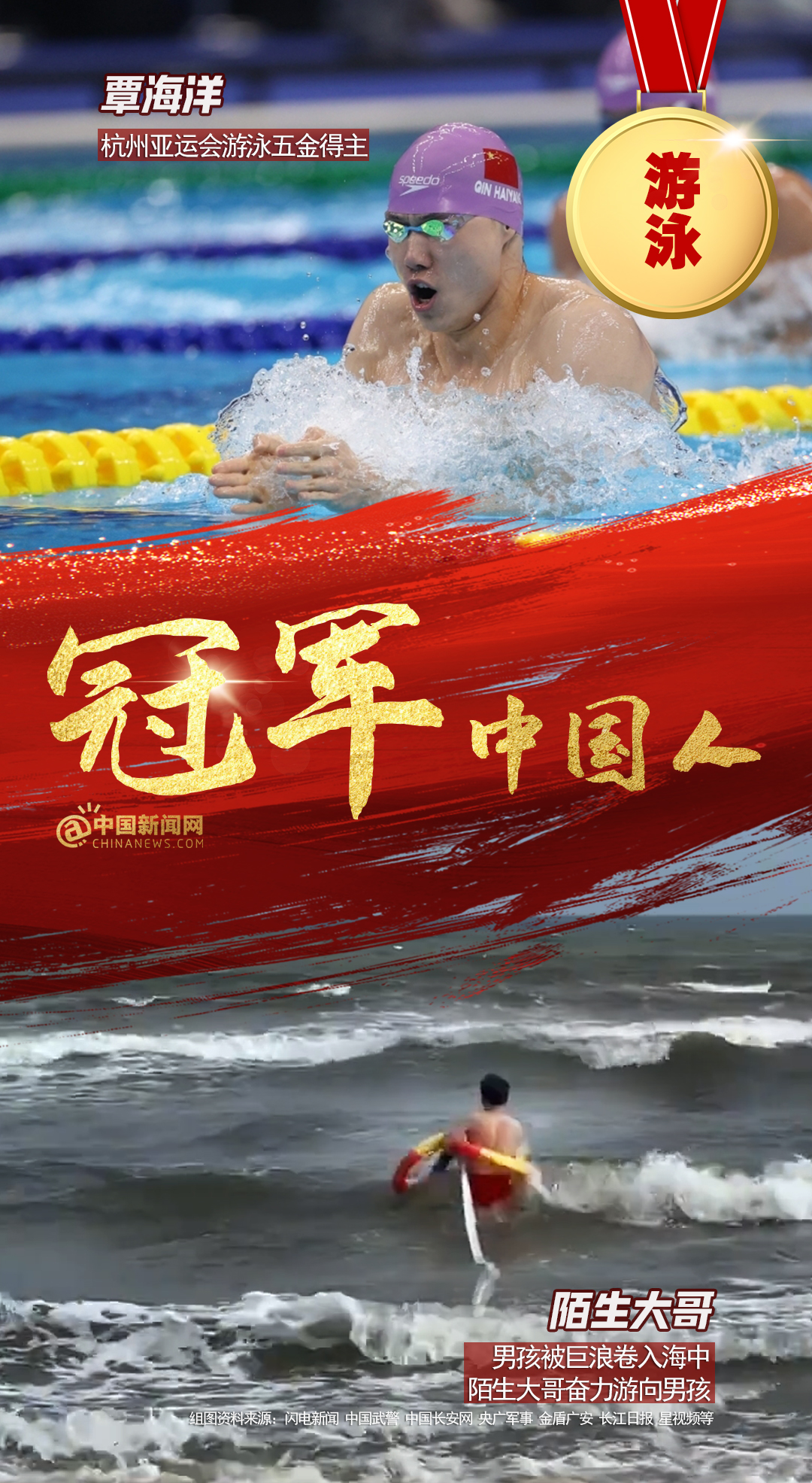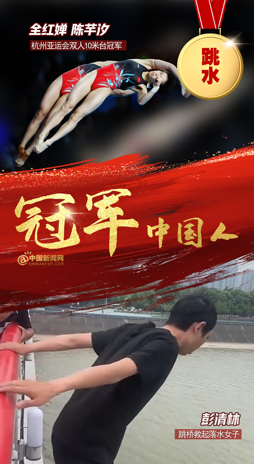 中新網(wǎng)12月15日電 全紅嬋、陳芋汐亞運(yùn)雙人10米臺奪金,彭清林跳十幾米大橋救人;中國男子4×100亞運(yùn)逆轉(zhuǎn)取勝,仙居人民醫(yī)院醫(yī)護(hù)接力搶救老人…賽場上,人生中,他們都是我們心中的冠軍!2023,冠軍屬于每個奮力拼搏獲得成績,默默付出與人為善,激勵、幫助、照亮他人的中國人!