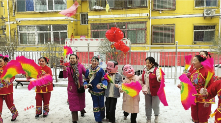 隨著喜慶熱鬧的音樂響起,活動(dòng)正式開始。舞蹈《豬八戒背媳婦》《燈籠舞》《扇子舞》等精彩的節(jié)目在居民面前輪番上演,博得了現(xiàn)場(chǎng)觀眾熱烈的掌聲。
