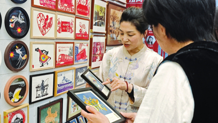 初夏時(shí)節(jié),走進(jìn)山西上林苑傳統(tǒng)剪紙藝術(shù)研究所,身著一襲傳統(tǒng)服飾的王銀鳳笑吟吟地講述了她與太原剪紙、與非遺研培的往事,她的身后是內(nèi)容多樣、色彩豐富的剪紙作品。與剪紙結(jié)緣四十余載,王銀鳳剪出了一段充滿堅(jiān)守與創(chuàng)新的人生故事。