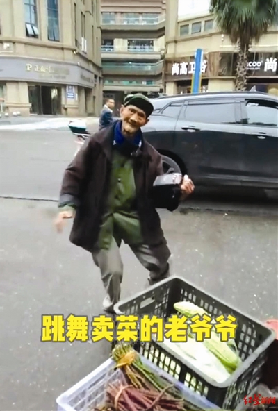 前幾天,一位爺爺一邊賣菜,一邊手拿音響,翩翩起舞,搖頭晃腦,臉上掛著可愛的笑容,十分享受。視頻上網(wǎng)后,引發(fā)大家關(guān)注,許多人為老人家樂觀的心態(tài)點贊。