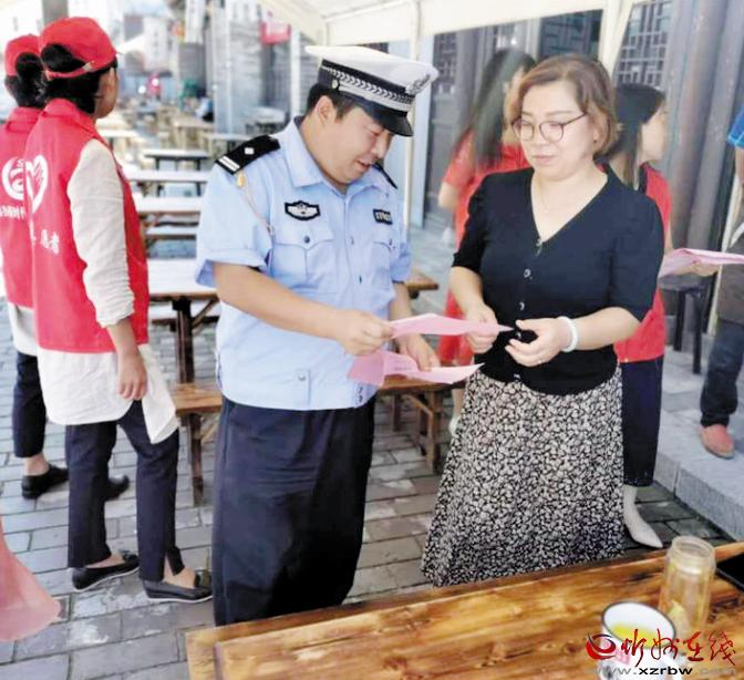 古城交警在美食一條街向市民宣講文明交通