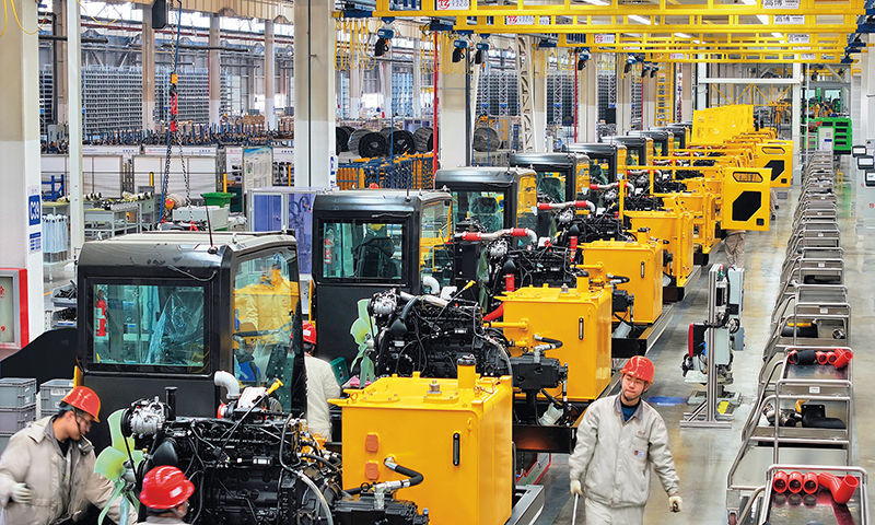 太重智能液壓挖掘機產業(yè)園內,裝配生產線井然有序、高效運轉(2024年1月12日攝) 李兆民攝