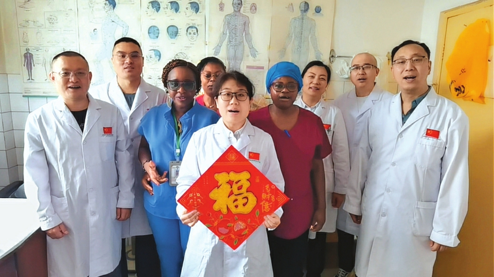 醫(yī)療隊隊員的辛勤付出,深深感動著喀麥隆的醫(yī)護同行和患者。得知中國最重要的傳統(tǒng)節(jié)日——春節(jié)來臨,當(dāng)?shù)蒯t(yī)院的醫(yī)生和患者紛紛向隊員們送上真摯的祝福。“新年快樂!”“謝謝你們!”簡單的話語,伴隨著友好的笑容和有力的握手,讓遠離故土的隊員們感受到了家一般的溫暖。
