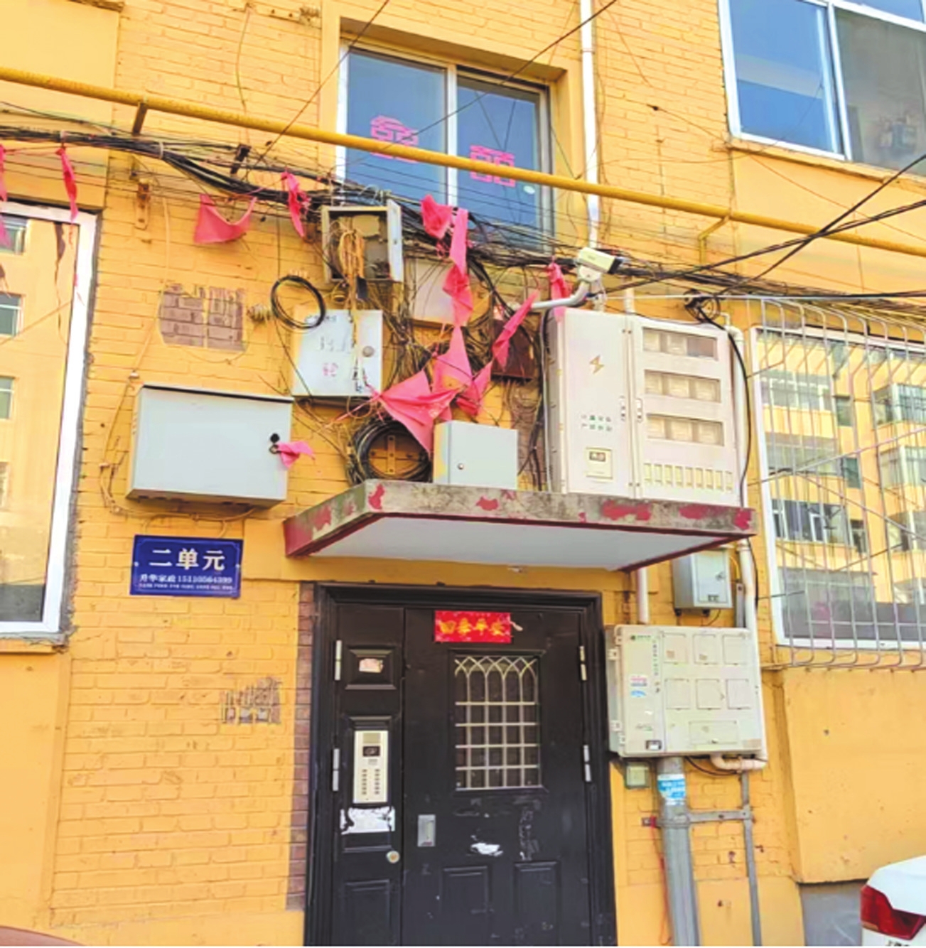 新建東街五公司家屬院線纜凌亂。