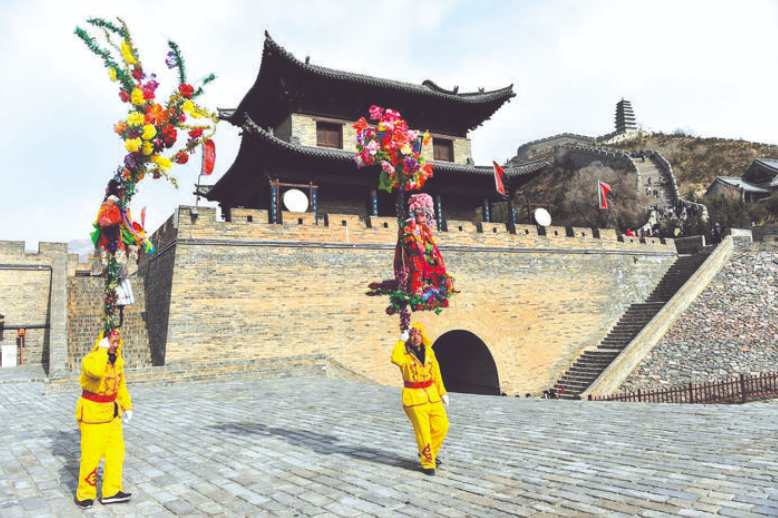 2月23日,在山西省代縣雁門關(guān),郝永?。ㄗ螅┰谶M行撓閣表演。