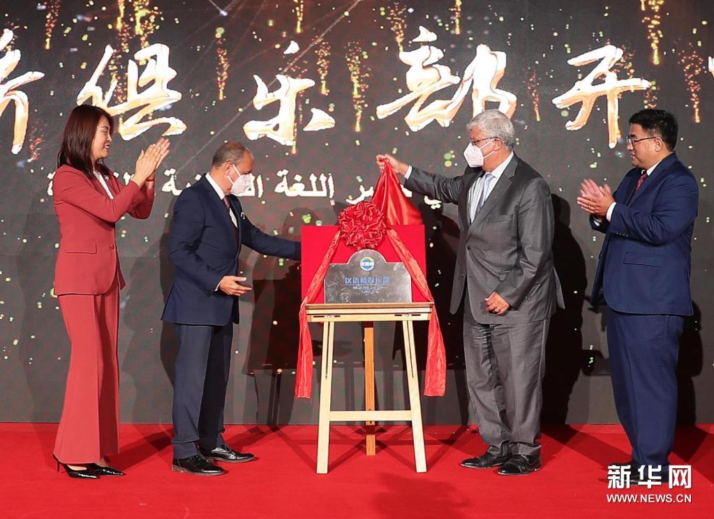 中國駐埃及大使廖力強(qiáng)、埃及高等教育部副部長穆罕默德·艾曼·阿舒爾和開羅大學(xué)校長穆罕默德·奧斯曼·霍希特等通過線上和線下方式參加了揭牌儀式。