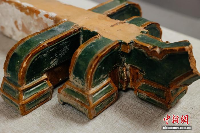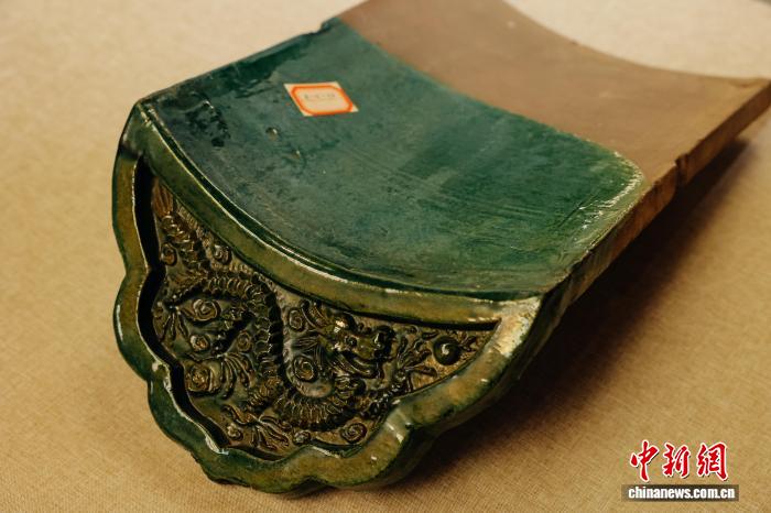 展覽展出的綠釉琉璃滴水。中國(guó)建筑科技館 供圖