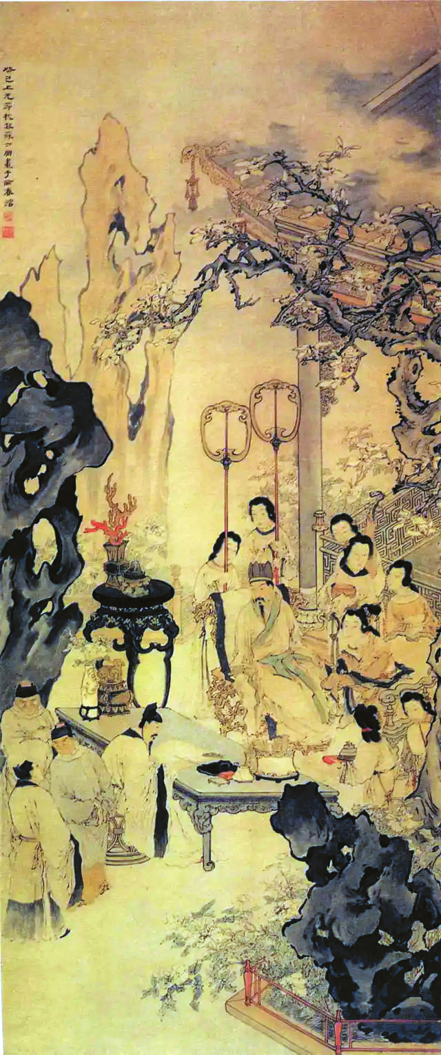 唐人李濬的《松窗雜錄》載,李白在長安任翰林待詔時,一日宮中牡丹綻放,唐玄宗與楊貴妃前往賞花,找來李龜年等人奏樂歌唱。但玄宗看了歌單,覺得都是些過氣的舊曲子,配不上眼前的名花美女,就讓李龜年趕快去找李白填新詞。當時李白宿醉未醒,趁著酒力秉筆賦詞,當場寫就三首《清平調》歌頌楊貴妃的美貌。待李龜年唱完,楊貴妃很高興,還親自領唱了這三首歌。唐玄宗也吹著玉笛伴奏,由此奠定了李白在盛唐詩壇“一哥”的重要地位。李白創(chuàng)作樂府詩的事情被收入《舊唐書》:“玄宗度曲,欲造樂府新詞,亟召白,白已臥于酒肆矣。召入,以水灑面,即令秉筆,頃之成十余章,帝頗嘉之?!边@段關于李白的佳話,在中國詩歌史上留下濃墨重彩的一筆。