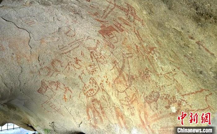 新疆哈巴河縣多尕特洞穴彩繪巖畫(huà)。哈巴河縣融媒體供圖