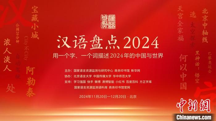 由國(guó)家語(yǔ)言資源監(jiān)測(cè)與研究中心、商務(wù)印書館等聯(lián)合主辦的“漢語(yǔ)盤點(diǎn)2024”20日在京啟動(dòng),“用一個(gè)字、一個(gè)詞描述當(dāng)年的中國(guó)與世界”,鼓勵(lì)全民用語(yǔ)言記錄生活,描述中國(guó)視野下的社會(huì)變遷和世界萬(wàn)象。