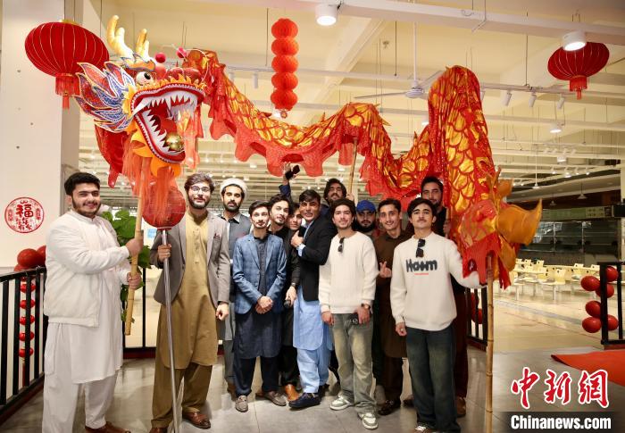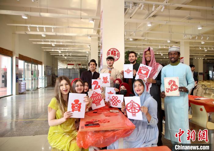 圖為外國(guó)友人體驗(yàn)舞龍表演。 陳啟道 攝 為了更加深入地感受中國(guó)“年”味,活動(dòng)現(xiàn)場(chǎng),外國(guó)友人們還體驗(yàn)了舞龍舞獅、剪紙等傳統(tǒng)春節(jié)習(xí)俗。伴隨著熱烈歡快的音樂,外國(guó)友人們反復(fù)練習(xí)舞龍舞獅的動(dòng)作,現(xiàn)場(chǎng)一片歡聲笑語。 “我非常喜歡中國(guó)的舞龍舞獅表演,喜慶又熱鬧,這種氛圍讓人十分享受,我剛剛還摸了一下獅子頭,希望能為新一年帶來好運(yùn)氣?!眮碜园突固沟牧魧W(xué)生俊豪說。