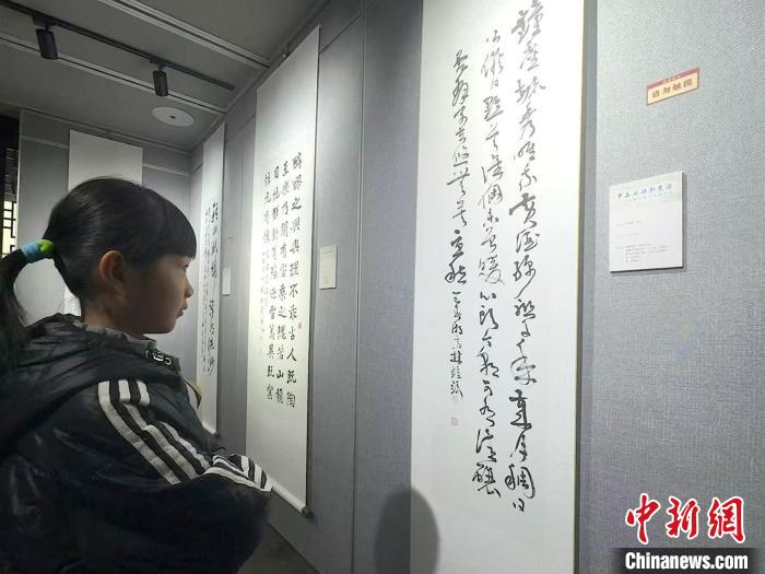 3月30日,一名女孩欣賞韓國書法家的書法作品。項菁 攝
