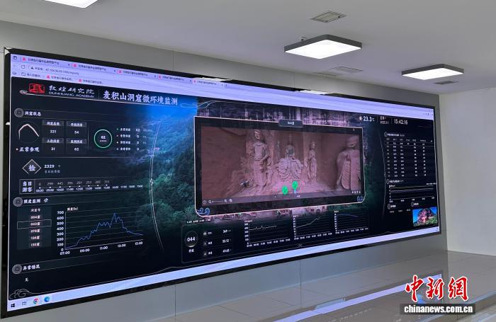 胡軍艦介紹說,麥積山石窟保護工作始于1941年,主要涵蓋塑像、壁畫等文物本體,以及崖體、棧道等文物載體的搶險加固和全面更新。如今,該工作由搶救性保護向預防性保護過渡,啟用監(jiān)測預警平臺,對石窟寺文物本體、洞窟微環(huán)境、崖體穩(wěn)定性、游客流量、大環(huán)境等進行實時監(jiān)測,構建起“人工巡檢+無人機監(jiān)測+電子設備預警”的立體化保護網(wǎng)絡。