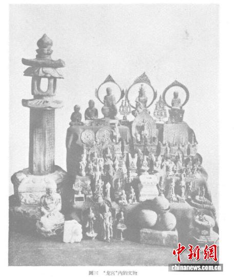萬(wàn)佛塔地宮出土文物的合影。(資料圖)(金華發(fā)布供圖)