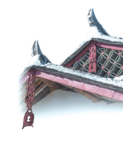 懸魚(yú)寓意豐富,蘊(yùn)含著古人對(duì)平安、幸福的向往。懸魚(yú)有祈求建筑免遭火災(zāi)的寓意,木結(jié)構(gòu)古建筑怕火,而魚(yú)為水中之物,懸魚(yú)有水能克火之意。不僅是懸魚(yú),過(guò)去古建筑的屋頂上,常裝飾與水有關(guān)的意象,如龍、鴟吻、鰲魚(yú)、水草等。懸魚(yú)也有祈求吉祥、富貴有余等寓意。魚(yú)與“余”“?!敝C音,象征富余、富裕、吉慶有余。魚(yú)多子,也體現(xiàn)了人們祈求多子多孫的愿望。有的懸魚(yú)下端雕兩條尾部相交的游魚(yú),寓意雙魚(yú)喜慶。懸魚(yú)除了使用魚(yú)的形象,也會(huì)采用其他紋樣,如蝙蝠紋樣,取“?!敝猓惶一?、荷花、梅花、牡丹等紋樣,寓意吉祥、和美、富貴;花瓶紋樣,象征平安等。后來(lái),懸魚(yú)不斷演化,有了卷云如意、飛禽等圖案,造型的式樣也日趨豐富。