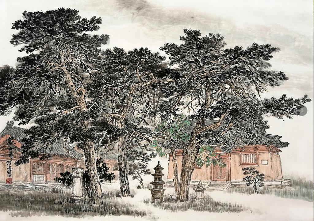 后來(lái)因?yàn)樗L畫上取得的成績(jī),調(diào)到了忻府區(qū)文聯(lián)工作。條件好了,畫的畫更多了,畫風(fēng)依然樸實(shí)親切,給人一種視覺(jué)的舒適感。這幾年他是在一路前進(jìn)的,他筆下的線條清朗有力,墨色變化也更加豐富,畫中有了渾厚華滋的氣象。細(xì)看他的畫,樸實(shí)中蘊(yùn)藏著精巧,拙拙的行筆中偶露鋒厲,給畫面帶來(lái)活力生機(jī)。我們?cè)谝黄饘懮诋嬅娼?jīng)營(yíng)上、構(gòu)圖處理上總能給人意想不到的驚喜。畫面虛實(shí)處理把握的恰到好處,又能準(zhǔn)確表現(xiàn)自然原貌的神采。于不知不覺(jué)中將自己的審美和情感融入了畫中,完成的寫生總比自然景色更加生動(dòng)、更吸引人的目光,但又讓你看不出他是在哪里做了手腳。