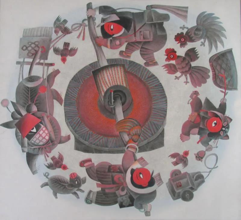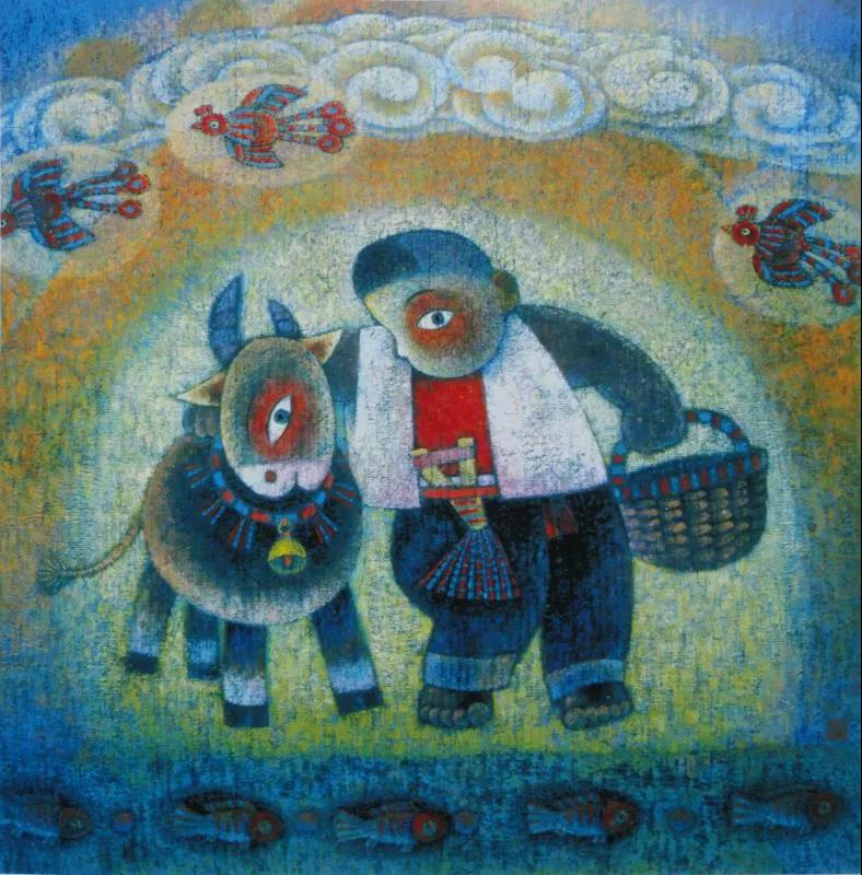 1973年開始自學(xué)美術(shù)并業(yè)余創(chuàng)作,專國畫兼及水粉、漫畫、剪紙。數(shù)十年來廣采博收,上溯遠(yuǎn)古巖畫、畫像磚、石、帛畫、洞窟壁畫、院體工筆以及民間剪紙、泥塑,面塑、年畫;橫向上油畫、版畫、裝飾、現(xiàn)代設(shè)計(jì)乃至西方藝術(shù)皆有涉獵吸收,融匯貫通,形成了一種既富傳統(tǒng)民族特色、鄉(xiāng)土味濃郁,又極具現(xiàn)代感的、自成一格的個人風(fēng)格。