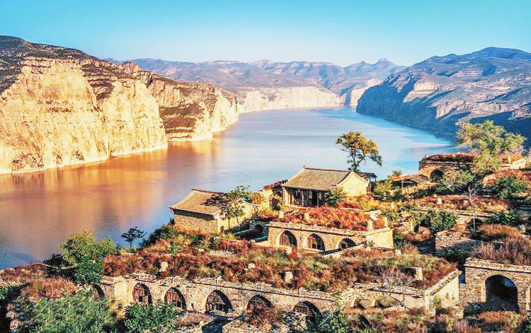 那時(shí)的關(guān)河口,船有常規(guī)木船,也有皮筏子,但這種皮筏不似黃河上游的羊皮筏子,是“牛皮混沌”,如何制作“牛皮混沌”,不很清楚,但運(yùn)載量更大。就這樣,從萬家寨、老牛灣、黑豆埝、寺溝到關(guān)河口,成為黃河中游起首的五個(gè)重要渡口。上游的龍口水庫(kù)建成之后,關(guān)河口的水面更開闊,船只可以自然靠岸,發(fā)展前景也更明朗?,F(xiàn)在,它不僅是一個(gè)野營(yíng)、劃船、攝影、徒步攀登的好去處,也是游覽山光水色的“小江南”,有樺林堡,有護(hù)方寺,還有石經(jīng)禪院,傳統(tǒng)人文氣氛濃厚。