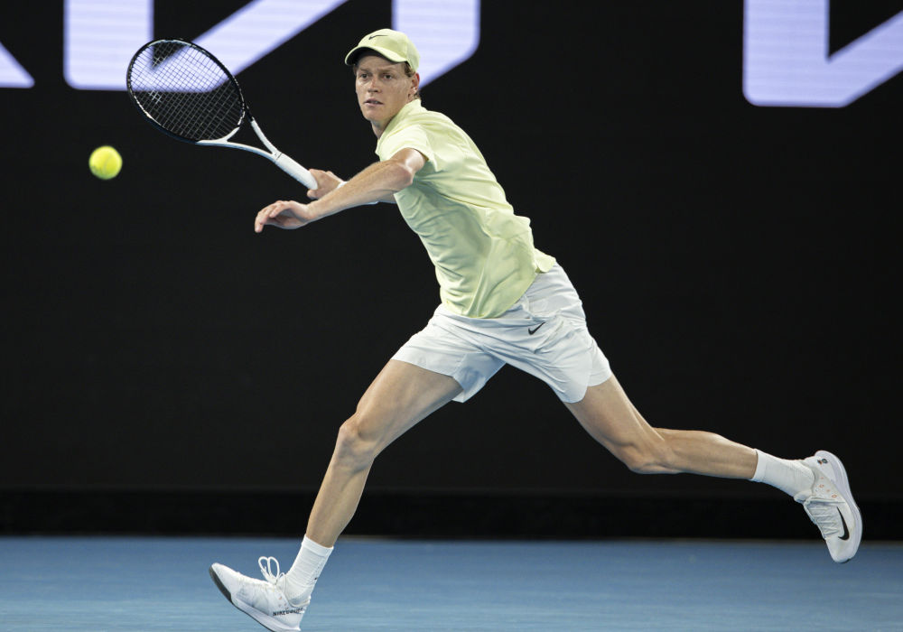 1月22日,辛納在比賽中回球。新華社發(fā)(胡涇辰攝)