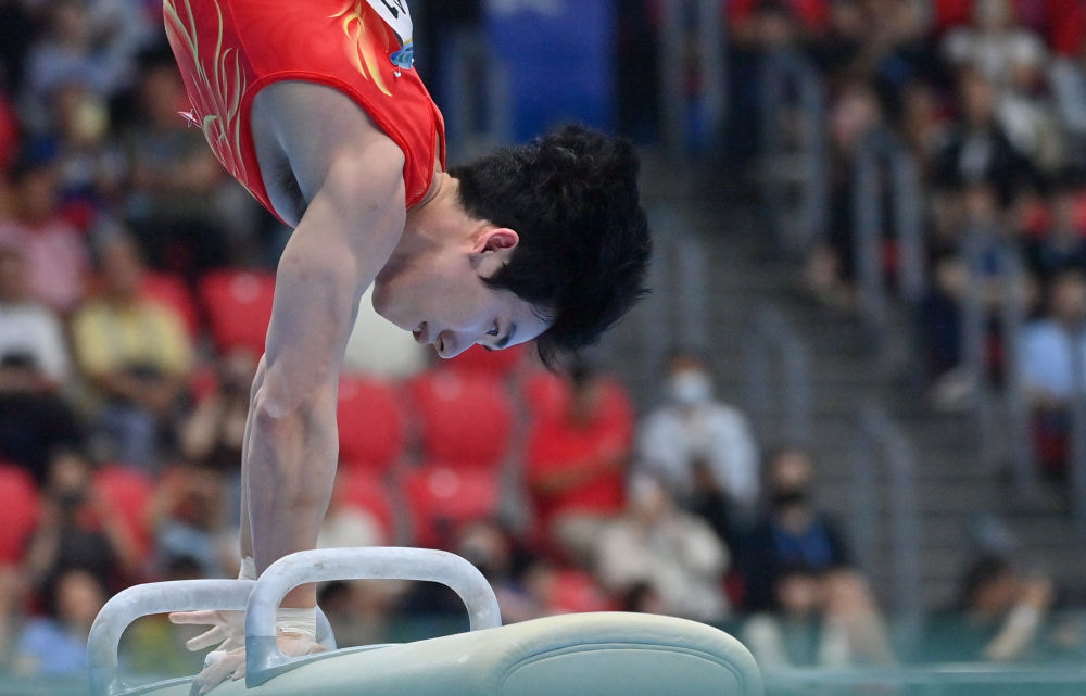 5月19日,張博恒在鞍馬比賽中。新華社記者 黃孝邦 攝