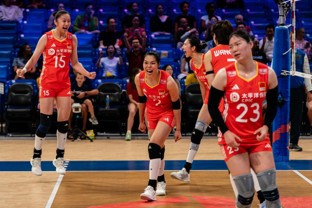 決定勝負(fù)的第五局,中國隊一度以10:7領(lǐng)先,但多米尼加隊追至13平。面對令人屏息的局末關(guān)鍵分,中國隊干脆利落連得兩分,以15:13笑到最后。