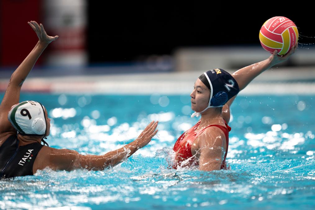 中國隊(duì)在交叉賽中遭遇世界排名第七的意大利隊(duì),雙方一開場就開始在水中“肉搏”,比拼防守。第一節(jié)中國隊(duì)以0:2落后。次節(jié)中國隊(duì)逐漸找到進(jìn)攻節(jié)奏,由王詩蘊(yùn)率先破門,此后雙方你來我往,交替得分。張育綿、周尚、張玘鑠的進(jìn)球幫助中國隊(duì)緊咬比分,半場結(jié)束中國隊(duì)5:6落后。