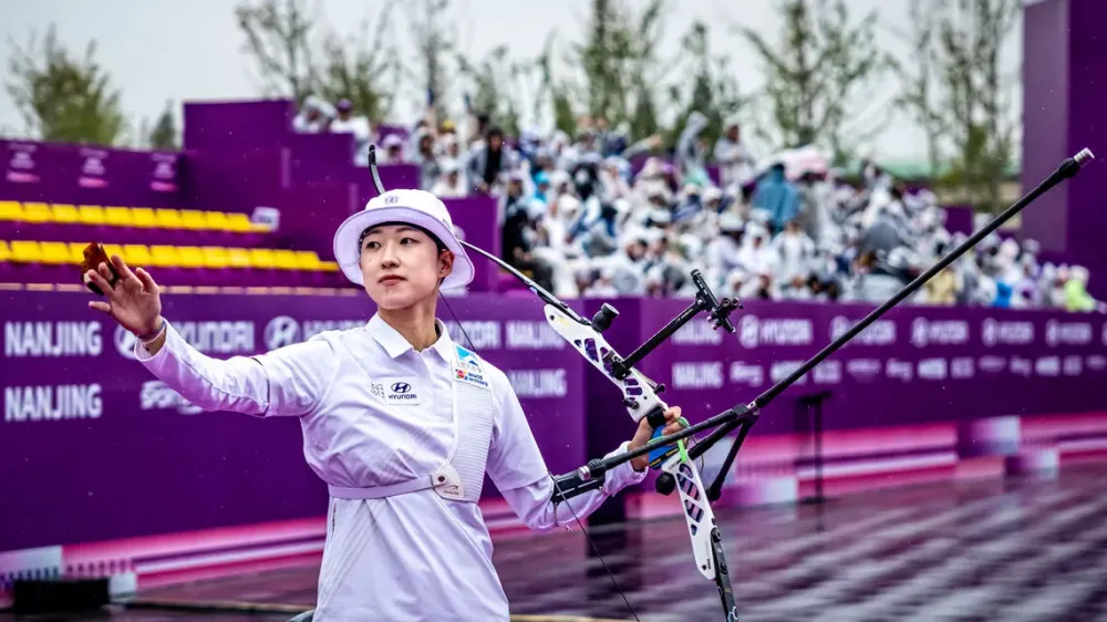 新華社南京10月19日電(記者王恒志)2025現(xiàn)代汽車·射箭世界杯總決賽19日在江蘇南京落幕,中國隊(duì)兩位女選手李佳蔓、朱靜怡和男子選手考文超均止步反曲弓首輪比賽,美國老將埃利森和韓國名將安山分別奪得男、女反曲弓金牌。