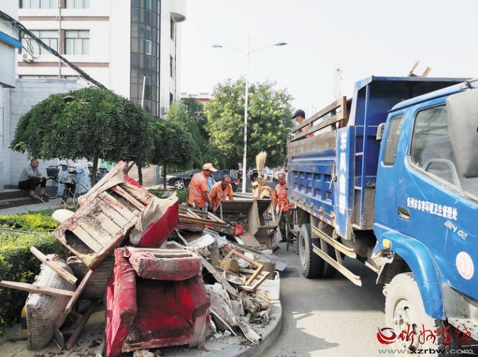 8月2日,忻州城區(qū)環(huán)衛(wèi)工人正在清運(yùn)垃圾。今年是第六屆創(chuàng)建全國文明城市評選決勝之年。在市創(chuàng)建全國文明城市總指揮部的統(tǒng)一協(xié)調(diào)指揮下,結(jié)合當(dāng)前正在開展的城區(qū)“兩下兩進(jìn)兩拆雙修一提升”專項整治行動,近日,各單位和居民小區(qū)清潔環(huán)境,助力創(chuàng)建全國文明城市。市市容環(huán)境衛(wèi)生管理處組織環(huán)衛(wèi)工人和車輛對指定堆放的垃圾進(jìn)行了集中清運(yùn)。 張劍雄 攝