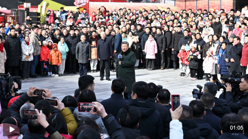 中華民族傳統(tǒng)節(jié)日春節(jié)即將到來(lái)之際,中共中央總書記、國(guó)家主席、中央軍委主席習(xí)近平在北京考察并看望慰問(wèn)基層干部群眾,向全國(guó)各族人民和香港同胞、澳門同胞、臺(tái)灣同胞、海外僑胞拜年!
