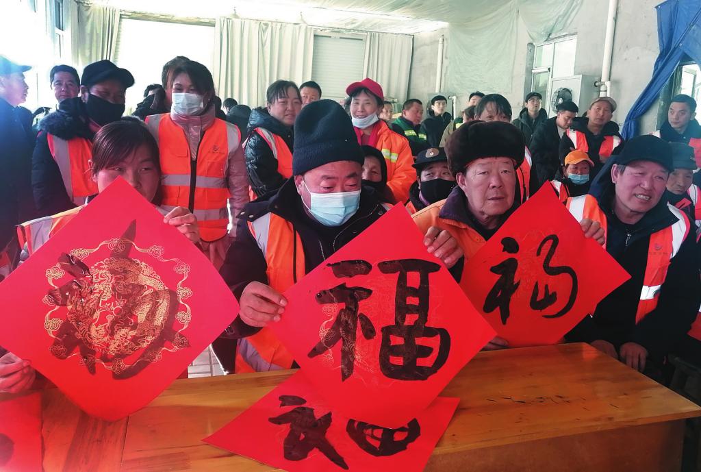 1月19日,民建忻州市委組織書法會員赴靜樂縣為50名環(huán)衛(wèi)和園林工人現(xiàn)場寫春聯(lián),并送上節(jié)日的問候。本報(bào)記者 李濤攝