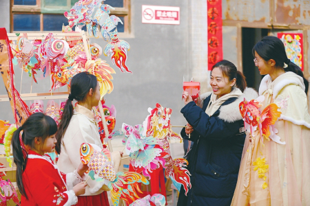 ①2月2日,長治市城隍廟前張燈結(jié)彩,眾多市民前來感受傳統(tǒng)年味。