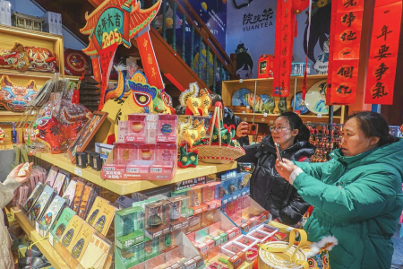 ⑤2月2日,太原鐘樓書院,游客正在拍照記錄具有濃郁地方特色的精美文創(chuàng)產(chǎn)品。