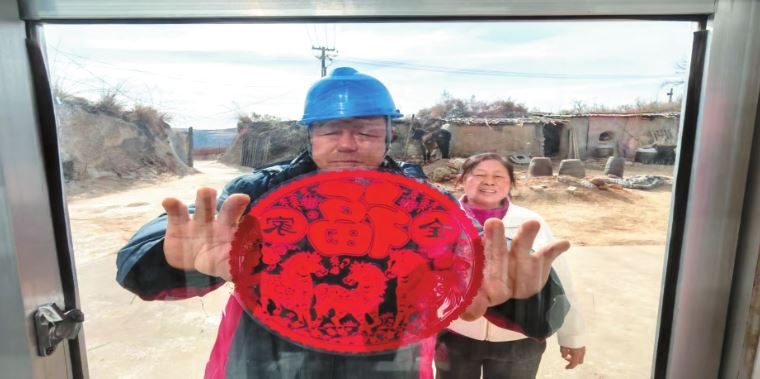 一個(gè)多小時(shí)后,皮卡車抵達(dá)紅糜梁村張偉小家。張偉小是村里的放羊漢,患有高血壓,定期給他捎降壓藥成了張吉?dú)g的順手工作。臨別前,張吉?dú)g仍不忘叮嚀他每天按時(shí)吃藥……皮卡車?yán)^續(xù)盤旋在溝壑之間,駛進(jìn)更偏遠(yuǎn)的的下養(yǎng)倉(cāng)村。張劉女和老伴早已等候多時(shí)。張吉?dú)g卸下他們子女寄來(lái)的快遞,得知今年他們的二兒子一家因工作無(wú)法返鄉(xiāng)過(guò)年,他便默默搬來(lái)木梯,將一對(duì)紅燈籠穩(wěn)穩(wěn)地掛在院門上。燈籠亮起時(shí),溫暖的光照在老人的臉龐上。