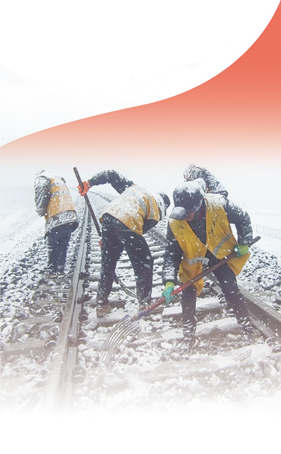 中國鐵路青藏集團(tuán)公司職工冒雪對整修后的道床進(jìn)行清理。馬祎俊攝