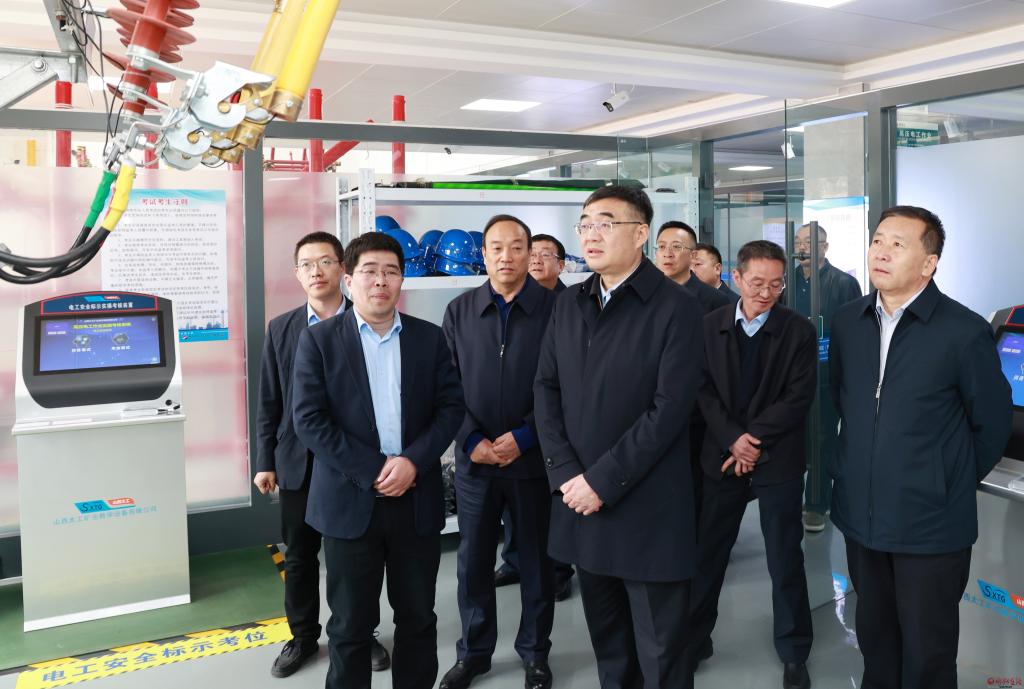 在神達(dá)安全技術(shù)培訓(xùn)中心。張存良 攝 在神達(dá)集團(tuán)棲鳳煤礦,李建國到調(diào)度中心察看值班記錄,檢查礦領(lǐng)導(dǎo)值班及帶班下井、煤礦安全監(jiān)管專員履職等監(jiān)管情況,了解井下人員數(shù)量、排班分布和生產(chǎn)狀態(tài)、煤炭產(chǎn)量、保供運銷及安全隱患排查整治等情況。他說,安全是煤礦企業(yè)發(fā)展的第一生命線,抓好安全生產(chǎn)是保持強勁發(fā)展勢頭的重要保障、夯實能源保供基礎(chǔ)的客觀需要、保護(hù)人民群眾生命財產(chǎn)安全的必然要求,要堅決扛牢煤炭保供政治責(zé)任,緊盯目標(biāo)任務(wù),加強組織領(lǐng)導(dǎo),科學(xué)有序組織生產(chǎn),全力保障煤炭安全穩(wěn)定供應(yīng)。要按照省委、省政府“三穩(wěn)”“三不準(zhǔn)”能源保供要求,堅持產(chǎn)能與資源相匹配、能力與產(chǎn)量相匹配、產(chǎn)量服從安全生產(chǎn)的原則,堅持“五不為過、五個必須”要求,統(tǒng)籌生產(chǎn)與安全,堅決確保能源保供各項工作不折不扣落實到位。