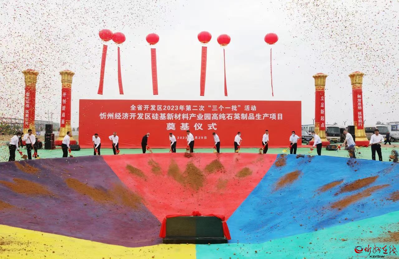 硅基新材料產(chǎn)業(yè)園高純石英制品生產(chǎn)建設(shè)項(xiàng)目奠基儀式現(xiàn)場(chǎng)。范濤 攝 此次活動(dòng)全市開發(fā)區(qū)共簽約29個(gè)項(xiàng)目,總投資92.55億元;共開工36個(gè)項(xiàng)目,總投資73.41億元;共投產(chǎn)21個(gè)項(xiàng)目,總投資23.51億元,涉及高端裝備制造、新能源、新材料、節(jié)能環(huán)保、現(xiàn)代服務(wù)業(yè)、現(xiàn)代農(nóng)業(yè)、基礎(chǔ)設(shè)施等產(chǎn)業(yè)。太忻一體化經(jīng)濟(jì)區(qū)忻州片區(qū)(含片區(qū)內(nèi)5個(gè)開發(fā)區(qū))共簽約29個(gè)項(xiàng)目,總投資138.8億元;共開工49個(gè)項(xiàng)目,總投資111.56億元;共投產(chǎn)43個(gè)項(xiàng)目,總投資49.78億元。