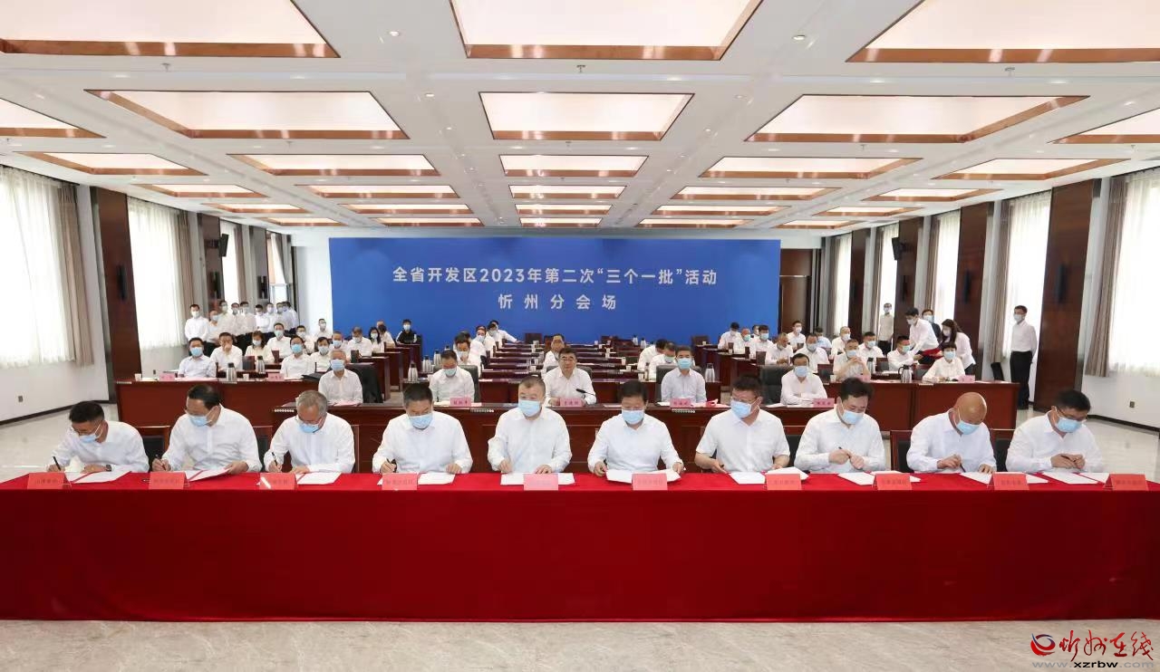 忻州分會(huì)場(chǎng)。范濤 攝 5月29日,全省開發(fā)區(qū)2023年第二次項(xiàng)目集中簽約一批、開工一批、投產(chǎn)一批“三個(gè)一批”活動(dòng)舉行,我市在忻州經(jīng)濟(jì)開發(fā)區(qū)設(shè)立分會(huì)場(chǎng),與全省同步舉行相關(guān)活動(dòng)。市委副書記、市長(zhǎng)李建國,省優(yōu)化營商環(huán)境和開發(fā)區(qū)重點(diǎn)工作督導(dǎo)一組副組長(zhǎng)郭海斌,市委常委、常務(wù)副市長(zhǎng)趙新年,市政府秘書長(zhǎng)張艮生在忻州分會(huì)場(chǎng)出席活動(dòng)。